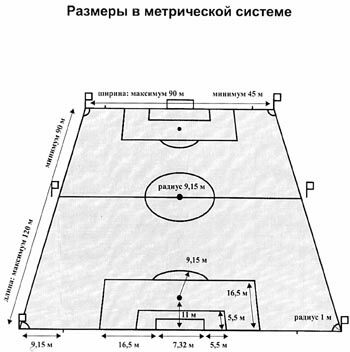 За пределами поля под прямым углом к линии ворот на расстоянии 9,15 м от дуги